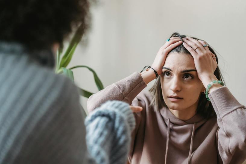 Photo by Liza Summer on <a href="https://www.pexels.com/photo/anxious-woman-touching-head-while-looking-at-crop-female-during-argument-6382706/" rel="nofollow">Pexels.com</a>